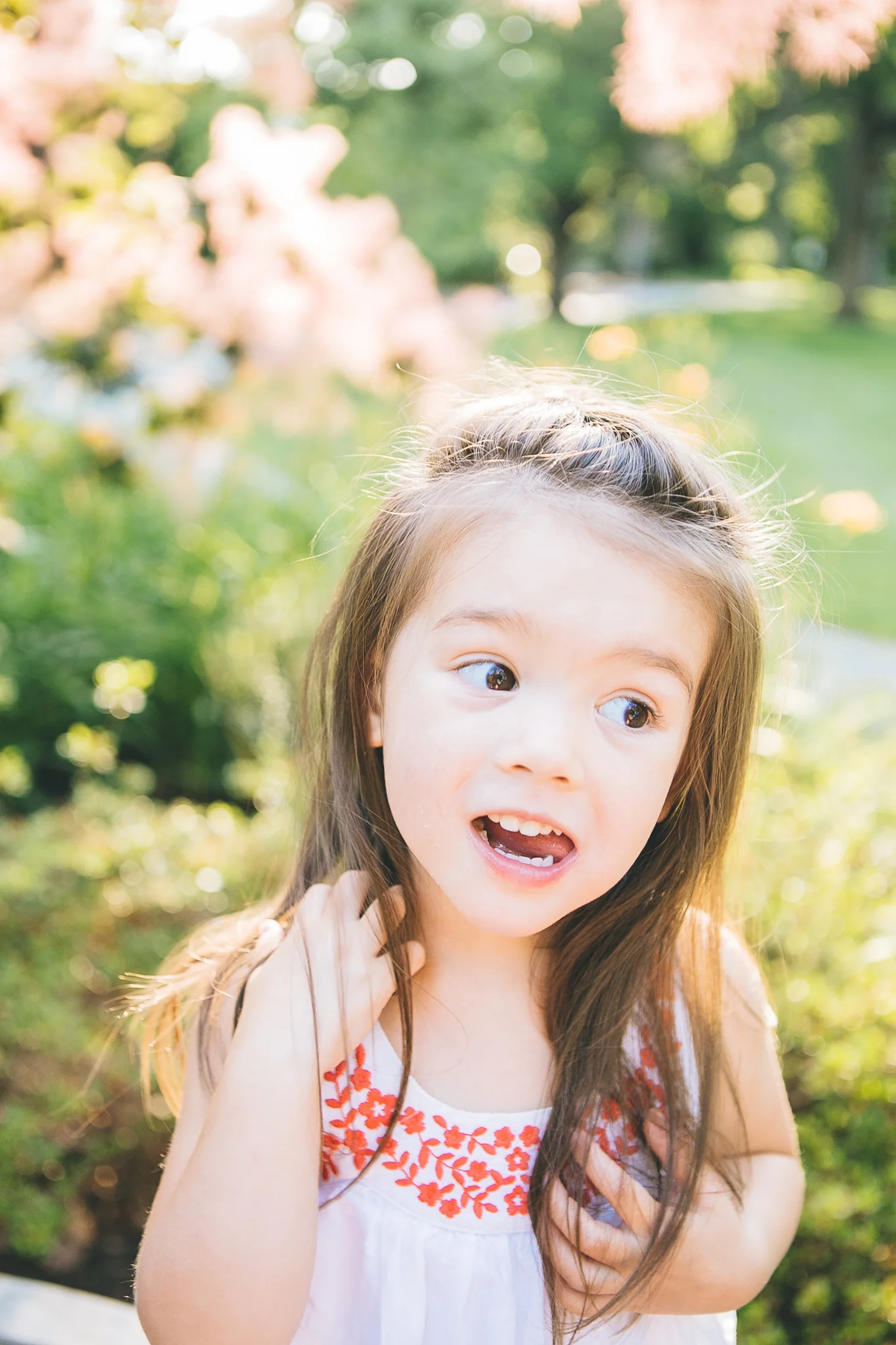 不看畫面但不斷按快門,這一張是約十秒她發現我在拍她後,也許是自覺調皮,